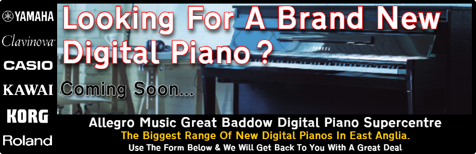 We are expanding and moving to a bigger store, just a few minutes from Chelmsford Town Centre and just two minutes from the A12 in January 2026. At present all of our new Digital Pianos are in storage whilst we are clearing our Ex Demo and Used models at Bargain Prices. If there is a specific New Digital Piano you are looking for, please use the form below to let us know and we will get back to you with availability and a great deal. Alternatively, take a look at our Used stock and grab a fully guaranteed Ex Demo or Used instrument at a great price. What’s more, most come with Free fully assembled delivery, a matching stool, digital stereo headphones, full warranty, 0% finance and part exchange possible on almost any musical instrument.